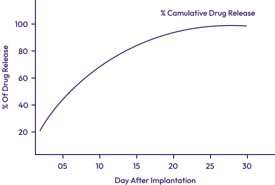 Proprietary blend of Sirolisum drug & Biodegradable polymers provides the initial burst release, following to 80% within 30 days and remaining 20% programmed to get released for 60 days. Release kinetics was designed to enhance the arterial healing process